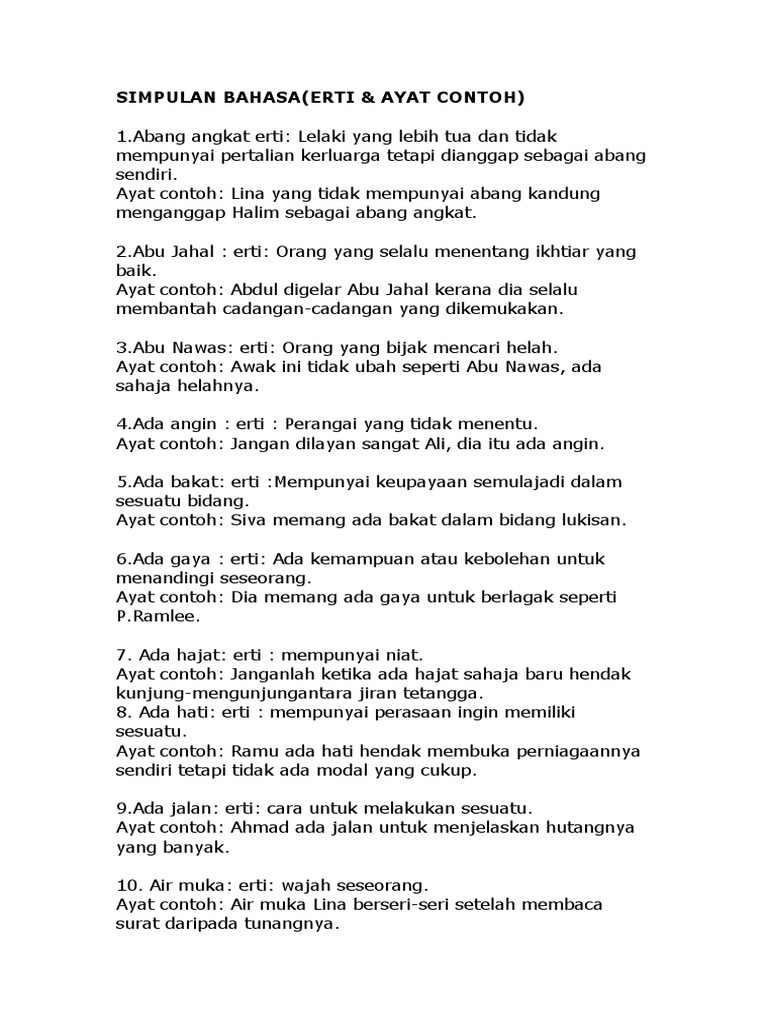 Contoh Ayat Simpulan Bahasa Pdf